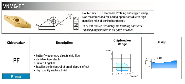 CVD ISO TURNING/BORING INSERT (ISO# VNMG160412PM DC4125)