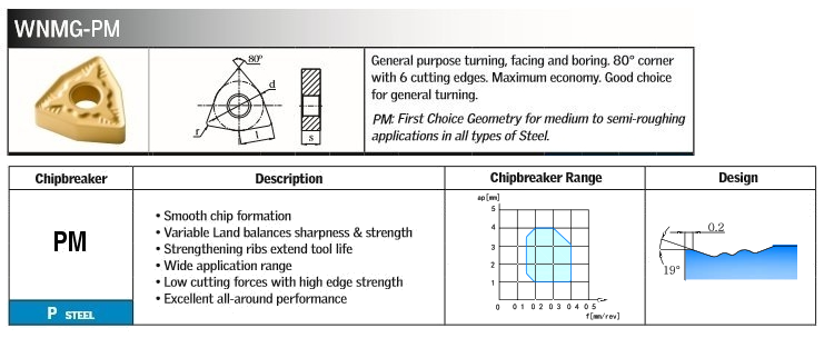 - Grade Description: Combined columnar grain MT-TiCN+Al2O3+TiN coating with a gradient substrate provides excellent wear resistance and toughness. Recommended for semi-finishing to medium roughing of steels and alloy steels.