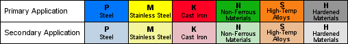 Carbide Depot chipbreaker and tool images use these color codes to represent the corresponding material recommendations.