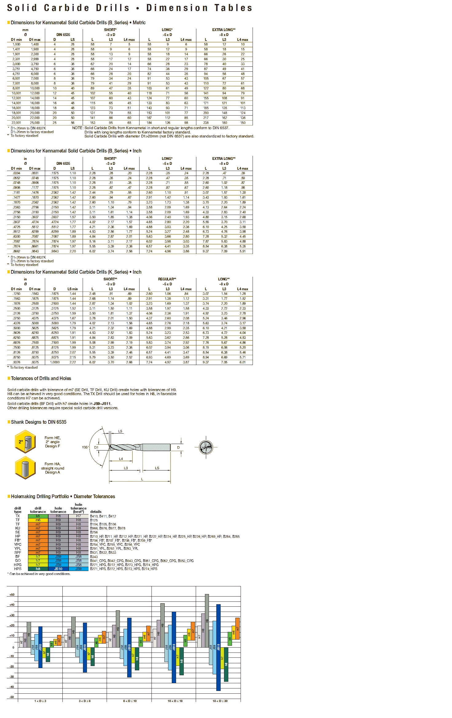 Kennametal Solid Carbide Drill Selection Guide and Dimensions