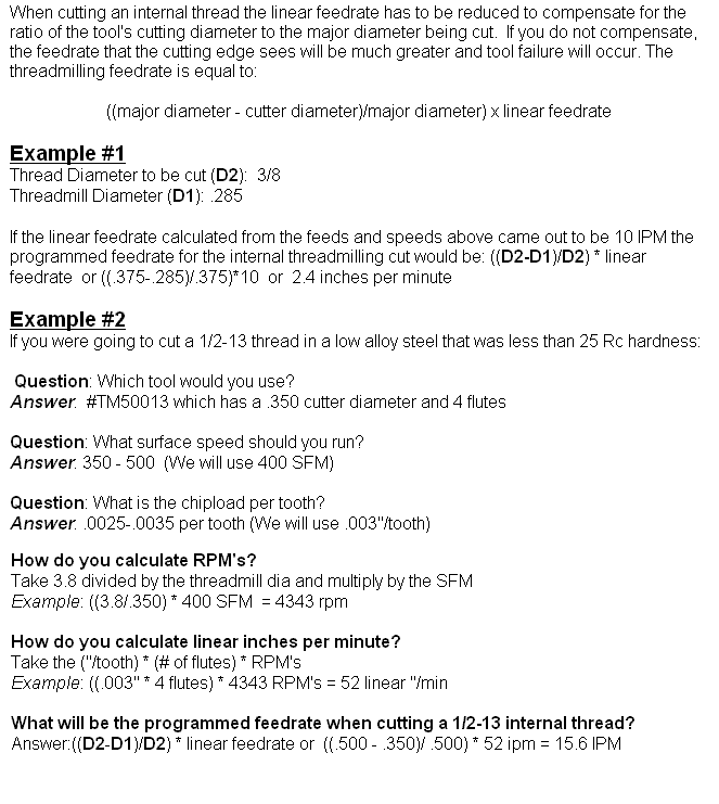 3.) Use two passes for coarse threads and one pass for fine threads (see chart)